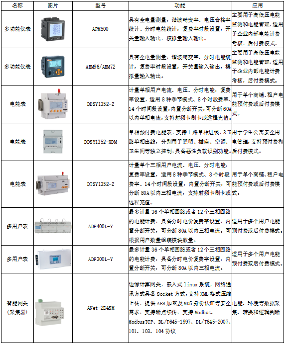 安科瑞針對轉供電企業提供多種電能計費方式,包括單相三相表、單戶單表、多戶表,預付費模式和后付費模式均可以靈活切換。另外根據不同場合用戶需求不同配置不同功能的計費儀表,比如商業綜合體物業側重是電費預收,而高校學生公寓側重點是用電安全,做好惡性負載特征識別。