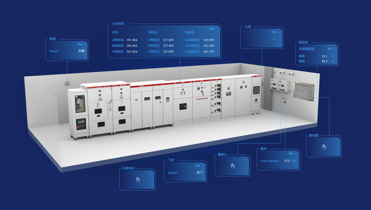 AcrelEMS-BP能效管理系統針對配電系統的電氣安全隱患配置相應的電氣火災傳感器、溫度傳感器,消防設備電源傳感器,接入消防疏散照明以及指示燈具的狀態實時顯示,并且對UPS的蓄電池溫度、內阻進行實時監視,發生異常時通過聲光、短信、APP及時預警。