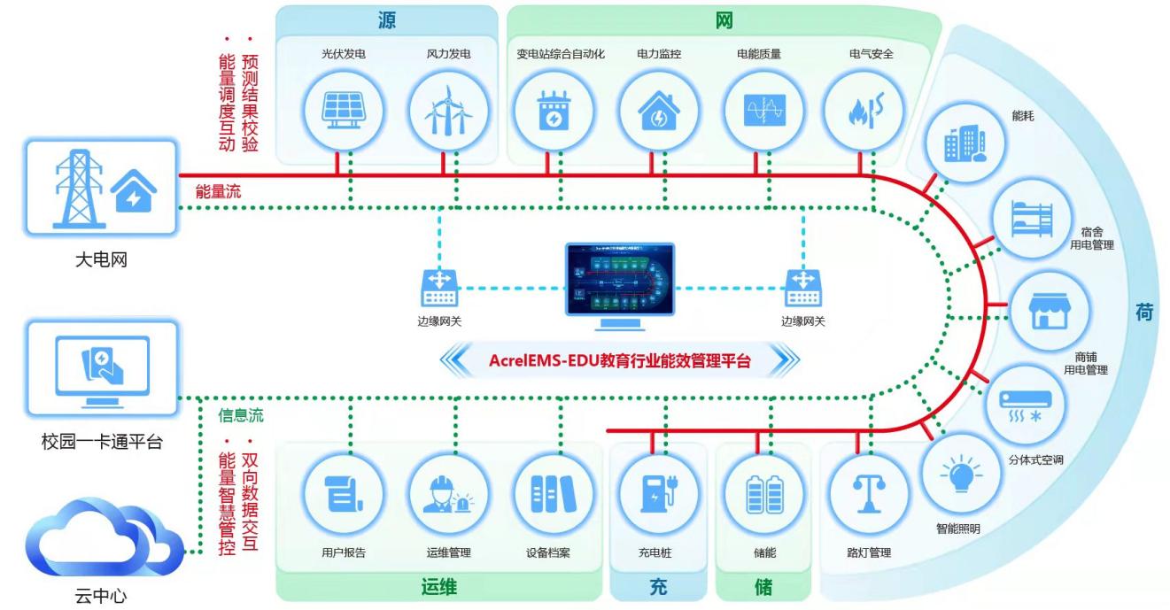 AcrelEMS-EDU校園綜合能效管理解決方案針對校園能源統計、后勤計費管理、校園運維管理等提供高校的信息化管理平臺。從“源、網、荷、儲、充”多個角度解析高校當下及未來的用能問題及用能需求,在統一的需求下“實現能源互補、信息互通”等管理模式。助力學校管理智能化、數字化、綜合化,實現節能校園、綠色校園、低碳校園。