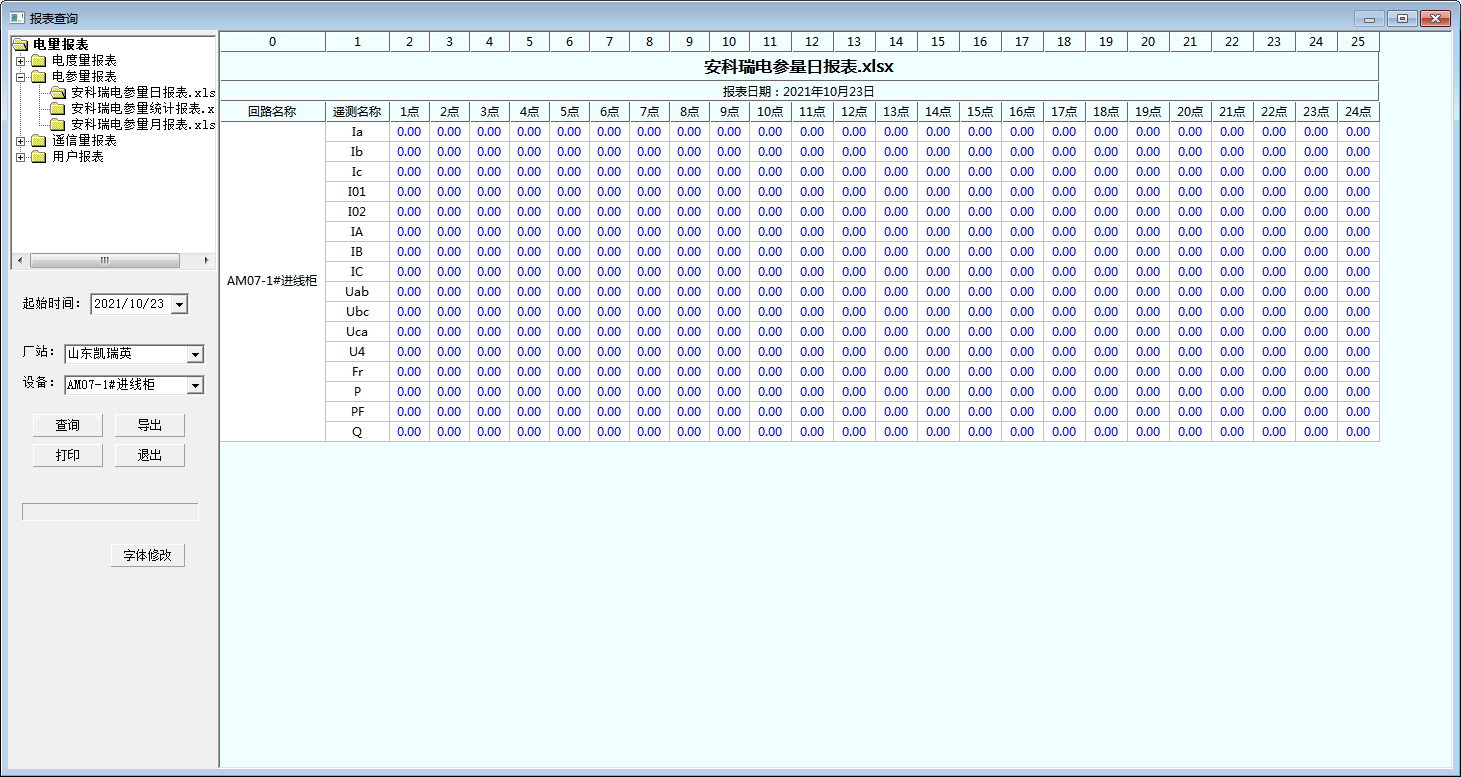 3)運(yùn)行報(bào)表: 查詢(xún)各回路或設(shè)備指定時(shí)間的運(yùn)行參數(shù),報(bào)表中顯示電參量信息應(yīng)包括:各相電流、三相電壓、總功率因數(shù)、總有功功率、總無(wú)功功率、正向有功電能等,報(bào)表格式有日?qǐng)?bào)表、月報(bào)表、年報(bào)表等。