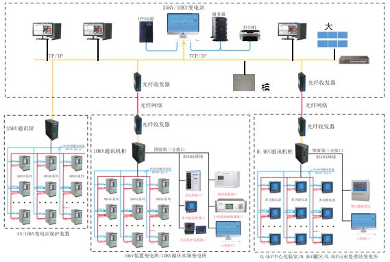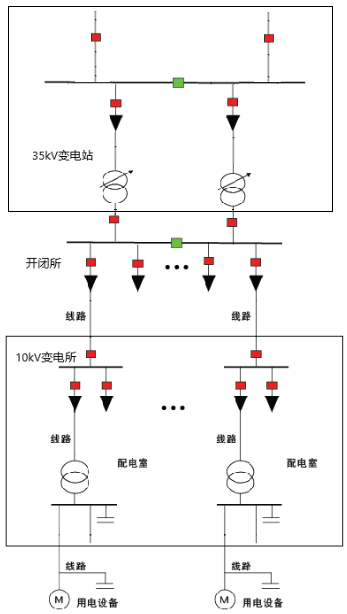 本項(xiàng)目35kV變電站為終端用戶(hù)變,35kV采用單母線分段接線,為保障35kV變電站和各分變電所一次設(shè)備穩(wěn)定安全運(yùn)行:需在35kV側(cè)和10kV側(cè)各高壓開(kāi)關(guān)柜配置微機(jī)保護(hù)裝置,智能操控?zé)o線測(cè)溫一體化裝置,以及變電站綜合自動(dòng)化系統(tǒng)Acrel-1000一套,實(shí)現(xiàn)對(duì)高壓柜的設(shè)備運(yùn)行情況實(shí)時(shí)監(jiān)視和保護(hù)。