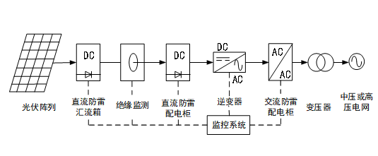 太陽能光伏電站主要由光伏電池陣列、匯流箱、低壓直流柜、逆變柜、交流低壓柜、升壓變壓器等組成,最后產生的交流直接并入電網。針對每個環節電力參數檢測的需要,安科瑞推出了AGF系列光伏匯流采集裝置、ACR10R系列防逆流監控裝置、APQM系列電能質量在線監測裝置、匯流箱及并網柜等產品,分別應用于匯流箱、直流防雷柜及交流柜中,并通過Acrel-2000 V8.0光伏發電監測系統實現后臺集中監控。