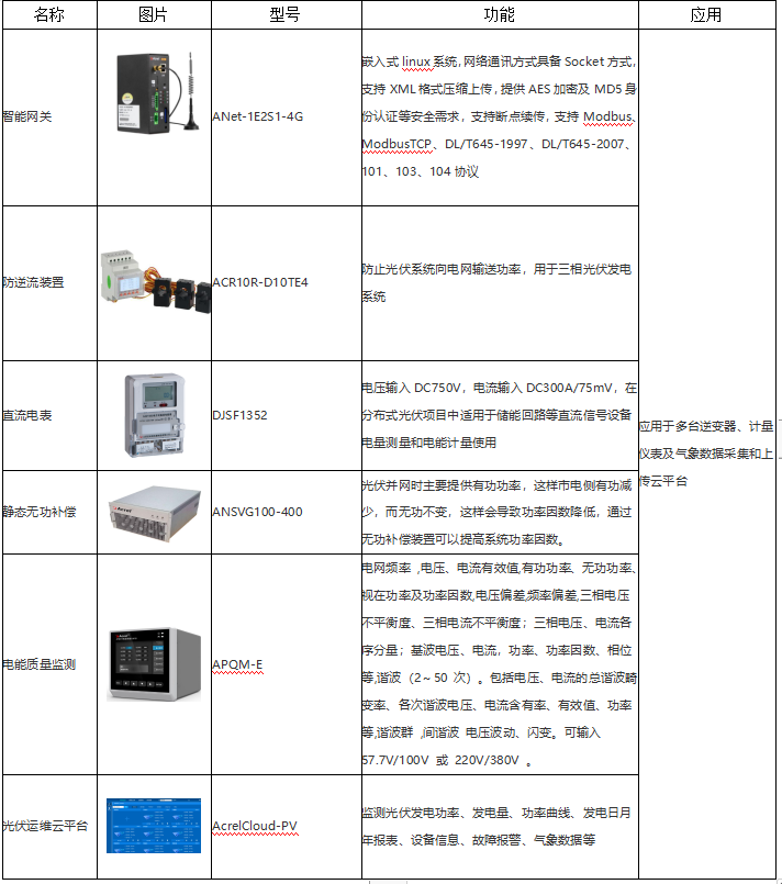 這種并網模式單體光伏電站規模適中,可通過云平臺采用光伏發電數據和儲能系統運行數據,安科瑞在這類光伏電站提供的解決方案包括以下方面: