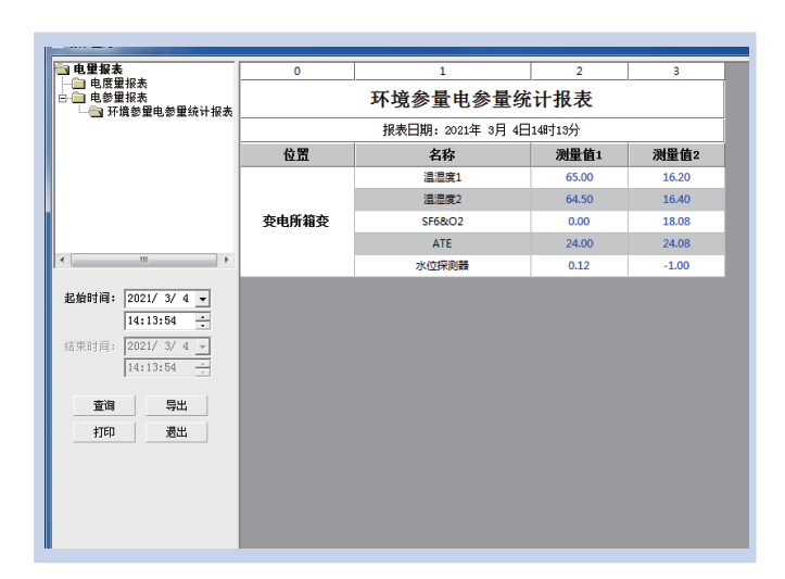 查詢配電室內設備的運行數據報表,包括日報表、月報表、年報表和查詢報表等。