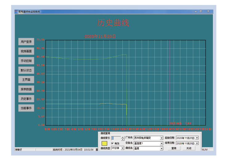在曲線查詢界面,可以直接查看遙測參量曲線,包括溫度、濕度、水位、有害氣體濃度、電壓、電流等曲線。