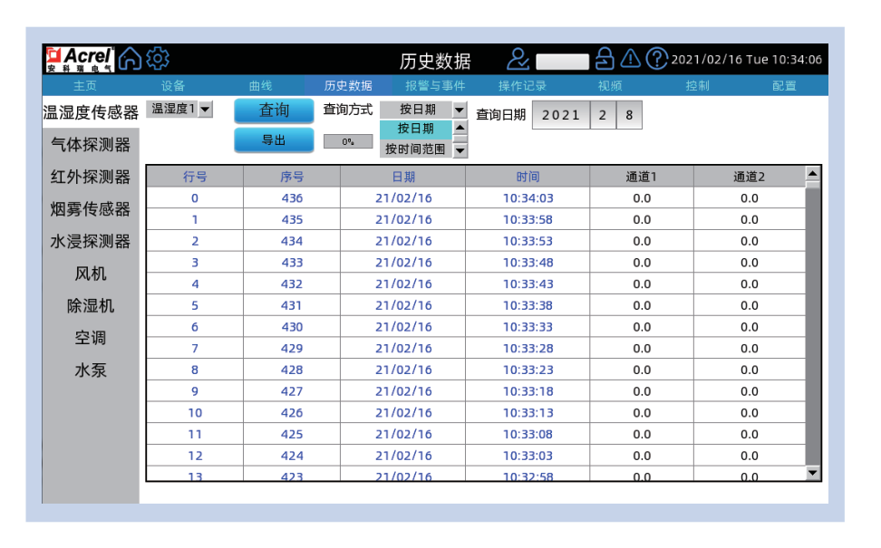 (2)按時間范圍查詢表示查詢某一個時間段內的歷史數據,查詢格式為年/月/日/時/分/秒;